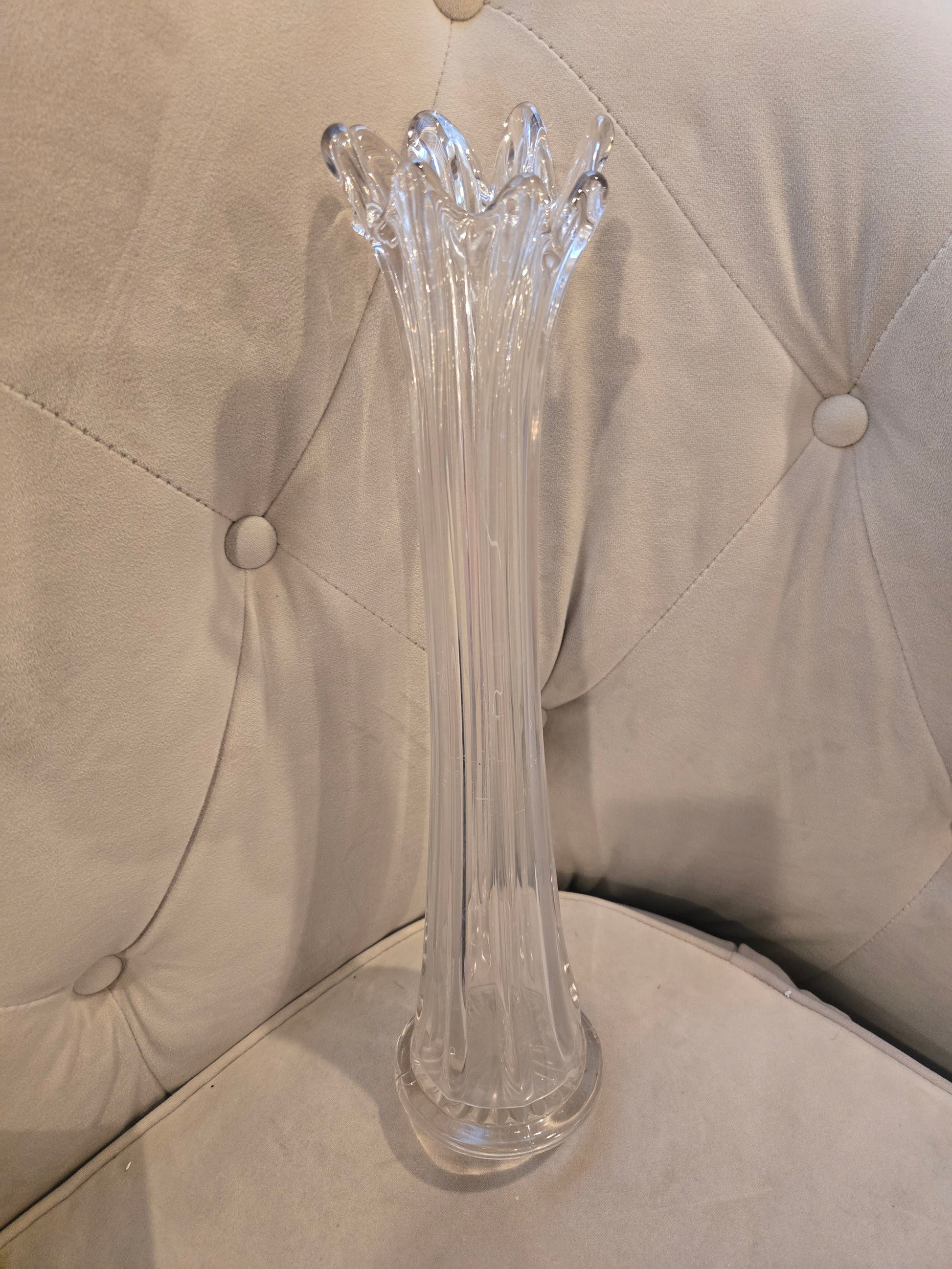 Vintage Clear Glass Fluted Swung Finger Vase w/ Starburst Base - 14” 8 Finger